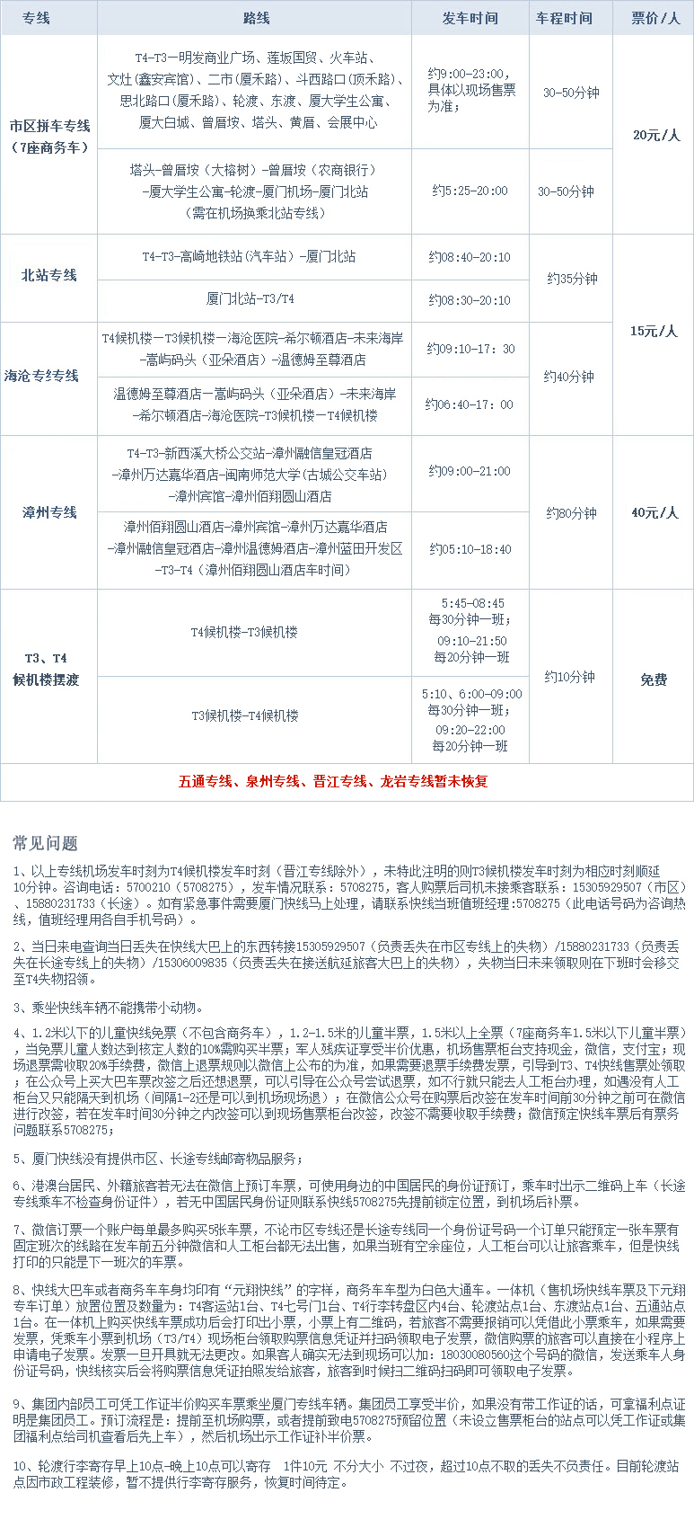 备注:以上专线以实际执行为准,具体情况请询问现场调度,咨询热线:0592-5708275